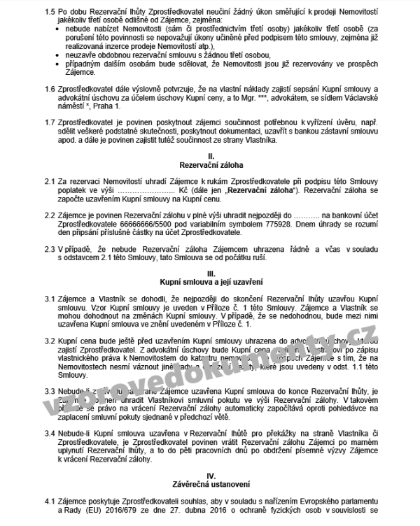 📄 Vzor je připraven k okamžitému použití při rezervaci bytu, domu nebo pozemku