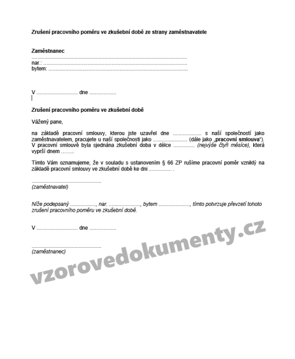 Zaměstnanec nenaplňuje očekávání? Díky tomuto vzoru můžete ukončit pracovní poměr ve zkušební době tak, jak umožňuje zákoník práce – bez udání důvodu, ale přesto korektně a právně čistě.